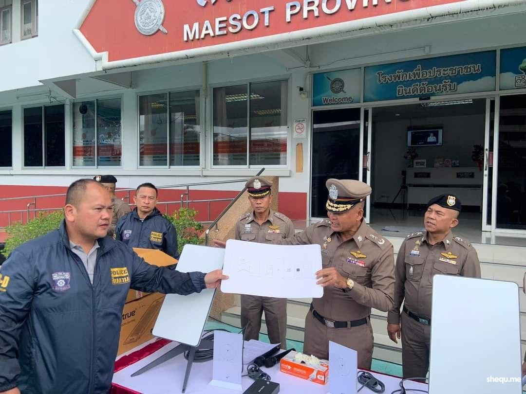 泰国湄锁警方宣布:他们逮捕了 2 名缅甸公民以及 19 台 StarLink 互联网设备,当 StarLink 设备从曼谷运送到湄索的一家私人航运公司时,警方对其进行了突袭,警察表示:这些设备都是送去水沟谷做诈骗的工具